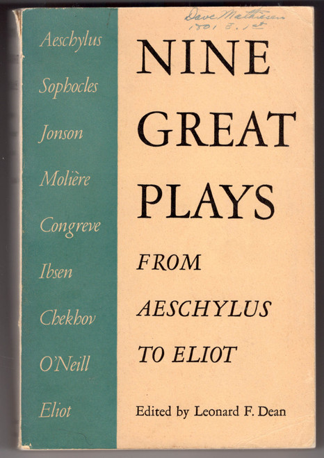 Nine Great Plays: From Aeschylus to Eliot, edited by Leonard F. Dean, is a curated anthology that traverses the evolution of Western drama, offering readers a rich selection of seminal works accompanied by insightful introductions. Dean's general introduction contextualizes each play, enhancing the reader's appreciation of their historical and cultural significance. The collection includes the following plays: